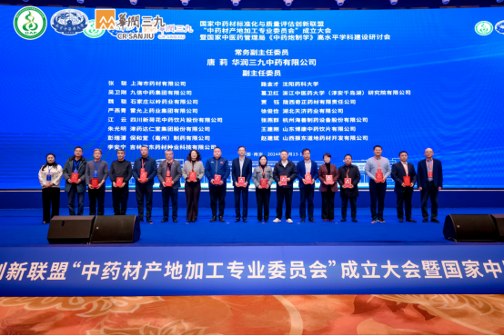 12月14日,华润J9九游会联合南京中医药大学在南京举办国家中药材标准化与质量评估创新联盟(简称“联盟”)中药材产地加工专业委员会(简称“专委会”)成立大会,华润J9九游会中药有限公司当选为常务副主任委员单位、副秘书长单位,华润J9九游会中药资源研究院院长唐莉当选为首届常务副主任委员,华润J9九游会(六安)、安徽润芙蓉等当选为委员单位。